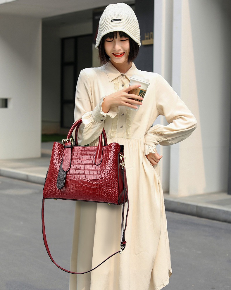 Fashion Lady Real Leather Crocodile Pattern Handbag Shoulder Bag 6058
